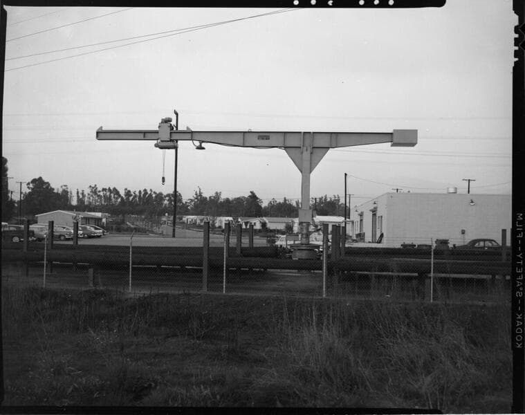 Corona Service Center - crane at pole yard used for lifting poles and equipment onto service vehicles.