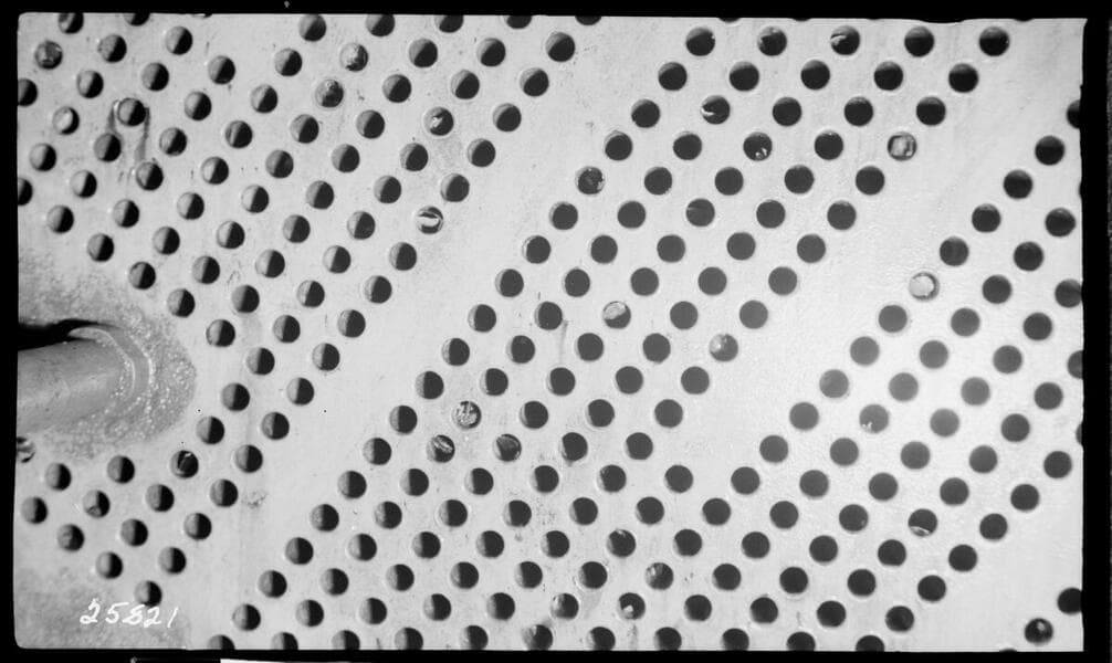 Long Beach Steam Station, Plant #2 - Upper southwest quarter of Unit 8R condenser tube sheet.