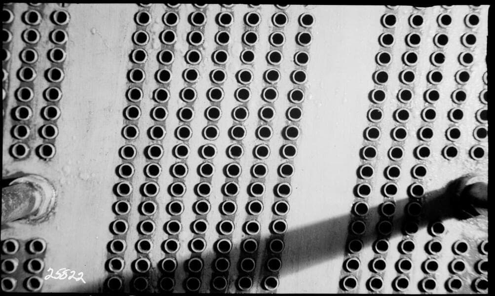 Long Beach Steam Station, Plant #2 - Upper northwest quarter of Unit 8R condenser tube sheet.