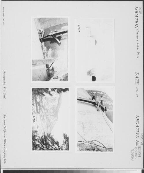 Big Creek, Florence Lake Dam - Testing coatings for concrete - Arch #7 Insulmastic, Arch #8 Asbestile, & Arch #9 Carbozite.