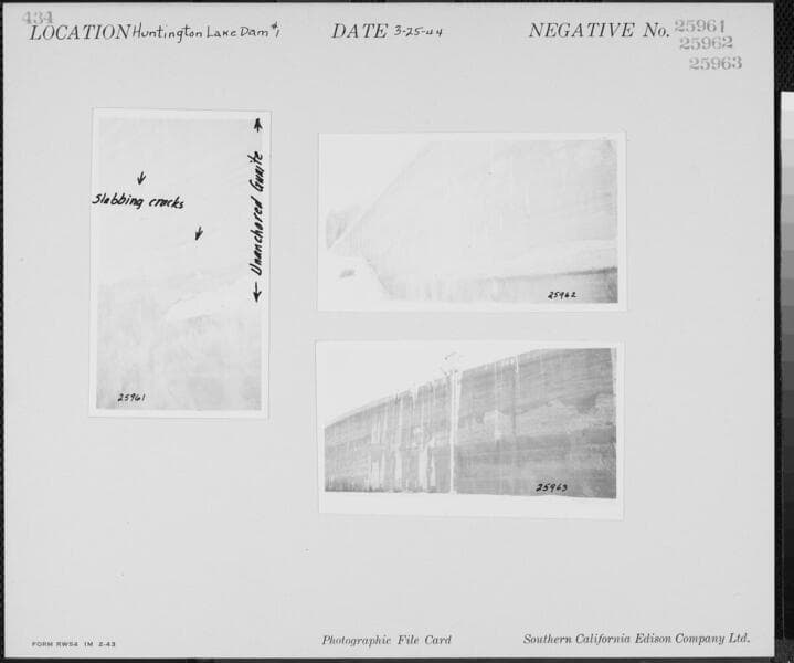 Big Creek, Huntington Lake Dams - Dam 1 - Cracking and back seepage on unreinforced gunite.