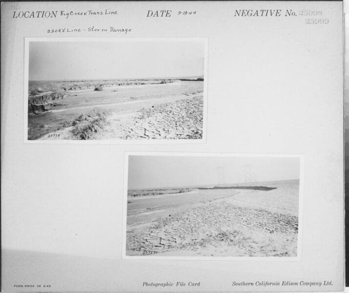 Big Creek Transmission Line - 220kV - Puente-Chino 66kV line storm damage. [plus similar shot (#25903) on same photocard].