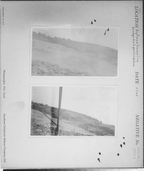 Big Creek Transmission Line - 220kV - Damage due to gas line failure. [plus similar shot (#26005) on same photocard].