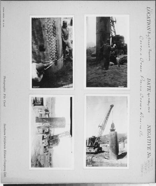 Big Creek Transmission Line - [Tower construction] Castaic Creek - Pacific Crane & Rigging Co. [plus similar shots (#26090, #26091, & #26092) on same photocard].