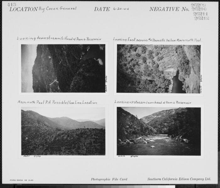 Mammoth Pool - Possible Powerhouse and Penstock site on East bank 1000' upstream from the head of Dam 6 reservoir.