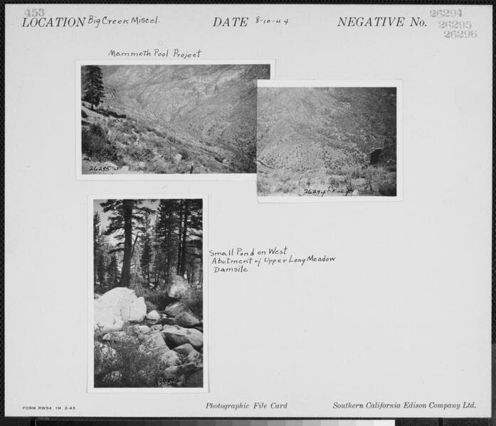 Mammoth Pool - Looking down penstock site at the head of Dam 6 reservoir.