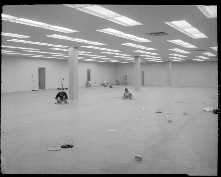 CEP General Office, Rialto - with construction site sign declaring construction of the new Calif. Electric Power Company's, General Headquarters building