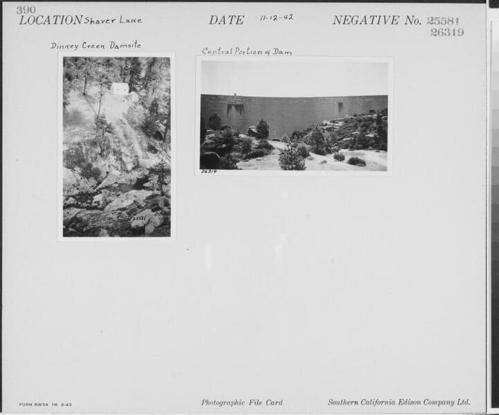 Big Creek, Shaver Lake Dam - [Looking south along downstream face of] Shaver Dam.