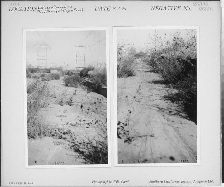 Big Creek Transmission Line - Flood damage in Tejon Ranch - M159-T8 [plus additional shot (#26345) on same photocard].
