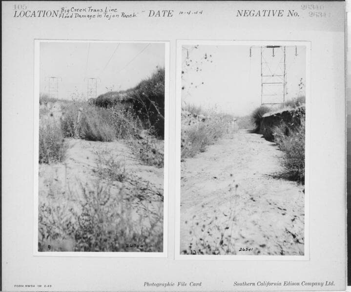 Big Creek Transmission Line - Flood damage in Tejon Ranch - M159-T8E [plus additional shot (#26339) on same photocard].