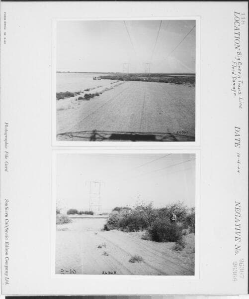 Big Creek Transmission Line - Flood damage in Tejon Ranch - M160-T3E [plus additional shot (#26333) on same photocard].