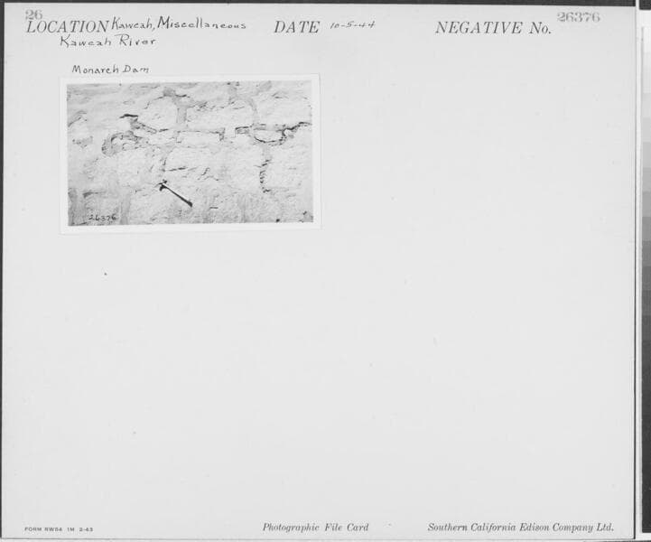 Kaweah Miscellaneous - Monarch Lake. [plus 2 additional shots of: Monarch Lake showing leakage - #25501, & Upper Monarch Dam - #25502] on same photocard.