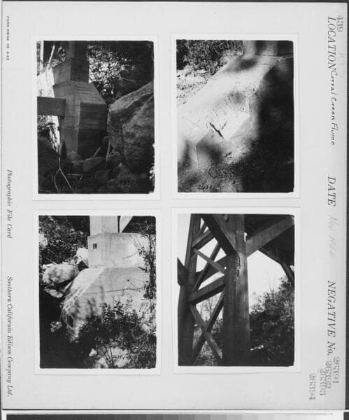 Kern River No. 3 - Corral Creek Flume - Footing 3E - [plus three similar flume shots: (#25630, #25631 & #25632) on same photocard.].