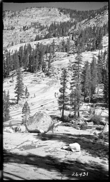 Big Creek, Fish Valley - Fish Creek Project - Lower area of left abutment at Fish Creek Damsite viewed from top of right abutment.