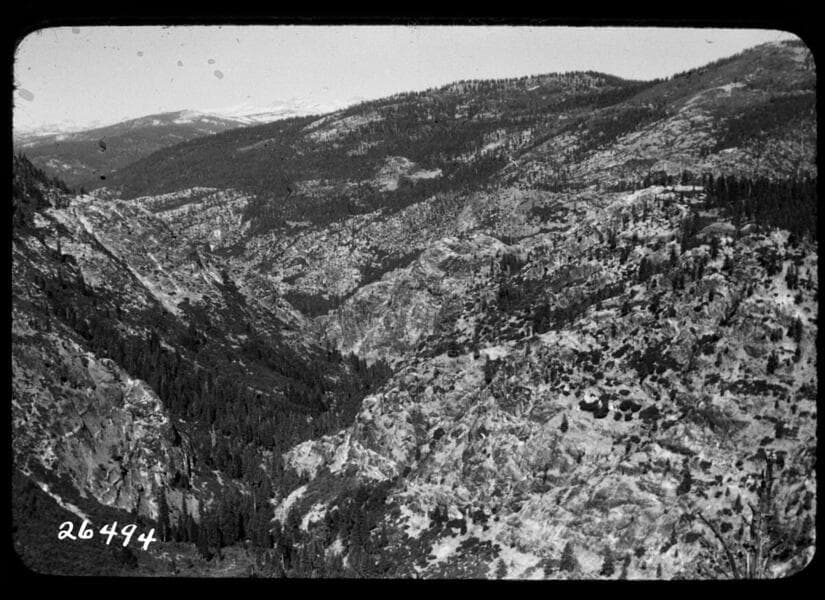 Big Creek, West Side Project - Granite Creek looking down on gauging station.