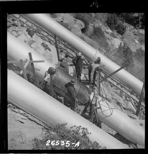 Big Creek #1 - Repairs to penstocks after break in line #2 (4/6/46). [variant of 02-26535a].