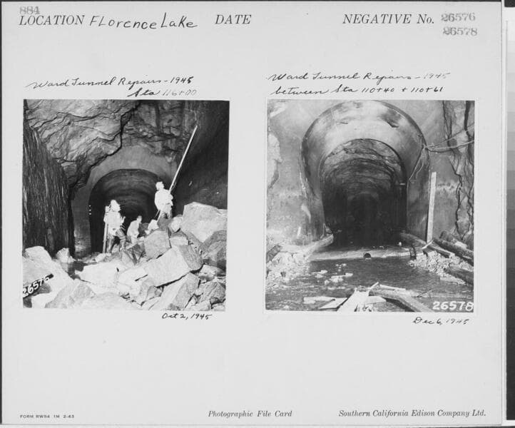 Big Creek, Florence Lake Dam - Ward Tunnel Repairs (1945) Between Station 110+40 and 110+61.