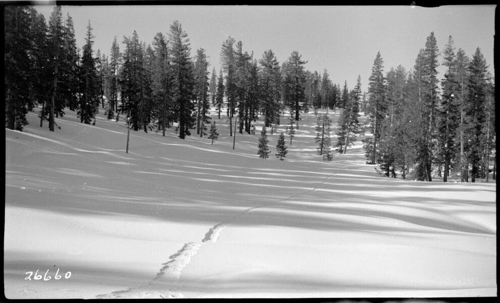 Big Creek, Florence Lake Dam - Sledding supplies to Camp 61c over Kaiser Pass with a horse-drawn sledge.