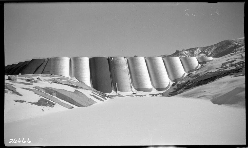 Big Creek, Florence Lake Dam - Upstream view of Buttresses and Arches in River Section.