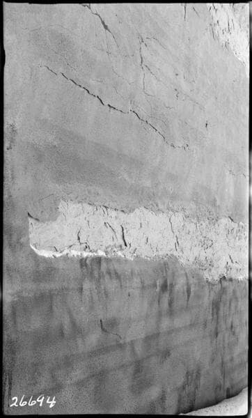 Big Creek, Huntington Lake Dams - Dam #1 - Showing relatively sound portion of the upstream face near the sluice pipe.