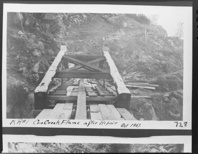 Kern River #1 - The Cow Creek flume after repairs, October 1907.