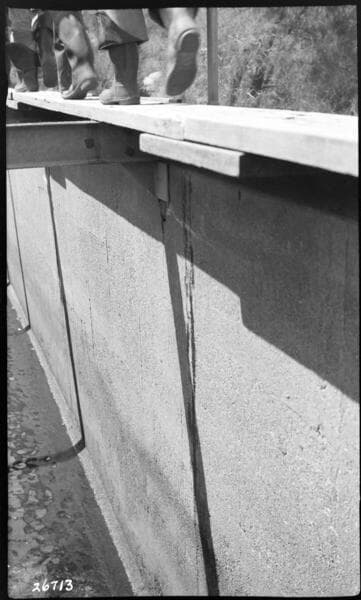 Kern River No. 3 - Corral Creek Flume - footing #4 west. showing typical "Parkeritus" [cracking?].