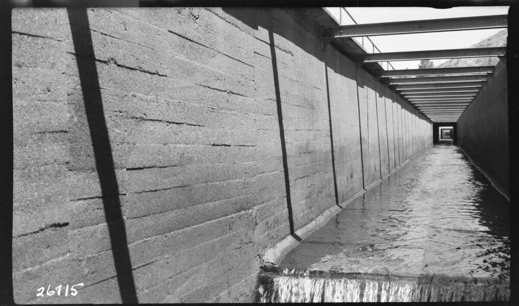 Kern River No. 3 - Corral Creek flume showing deteriorated Arco paint.