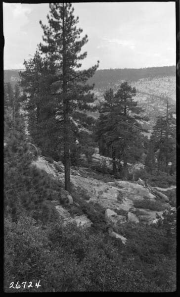 Big Creek Gen'l - Tombstone Creek - Pipeline, looking down 40% grade on "Cat" road.