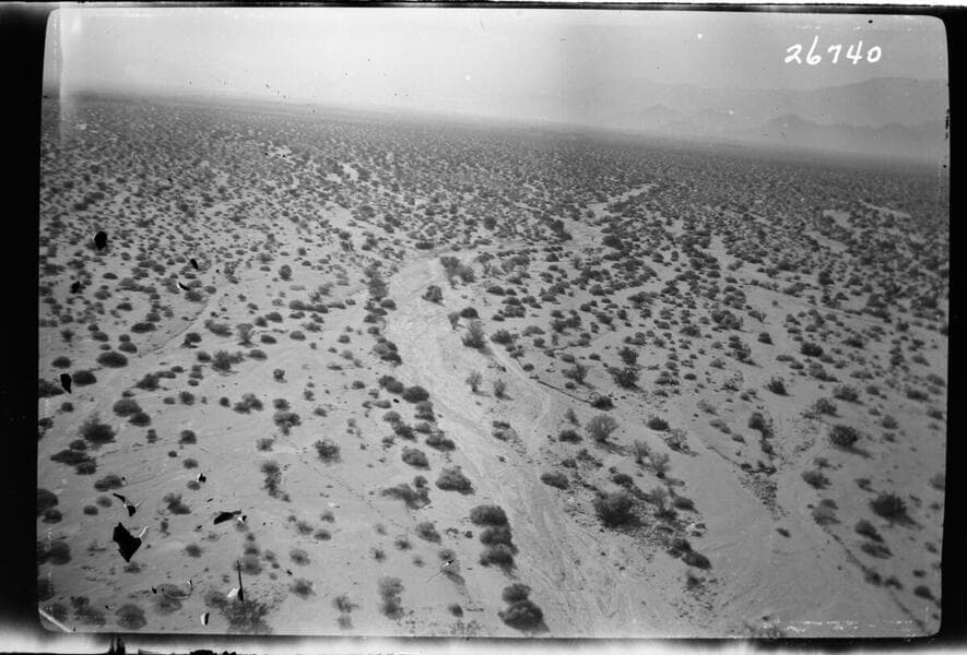 Boulder-Chino Transmission Line (3rd) - Storm damage near M42T2. Looking northerly along old road west of Mr. Dunn's property. Photo taken from Beacon tower.