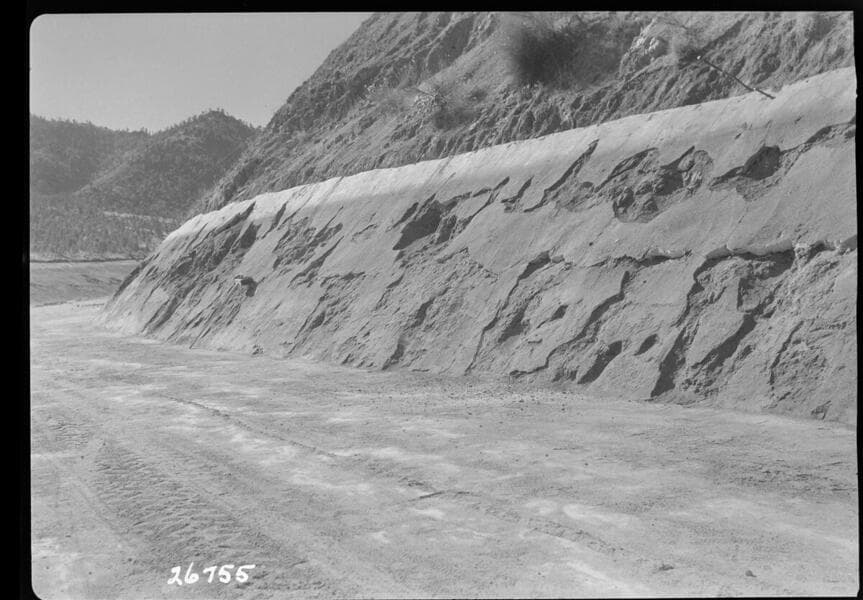 Borel Powerhouse - Borel Canal: approx. 1000 ft. below Kern River Flume, right-hand bank before repair.