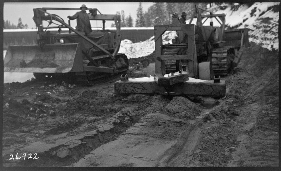 Big Creek, Huntington Lake Dams - Dam #3 - Topping out backfill.