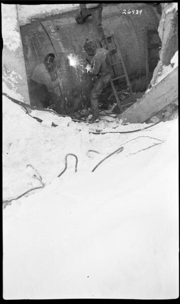 Big Creek, Mono-Bear Diversion - Welding patch on Mono-Bear Siphon at Camp 62.