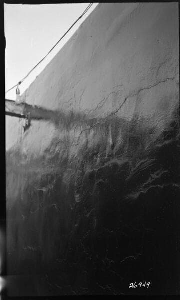 Kern River No. 3 - Salmon Creek Flume - Detail of alligatored Coal Tar paint.