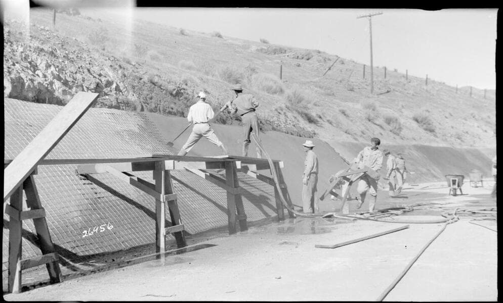 Borel Powerhouse - Borel Canal - Placing gunite canal wall lining at approximate station 25+00 by Johnson-Western.