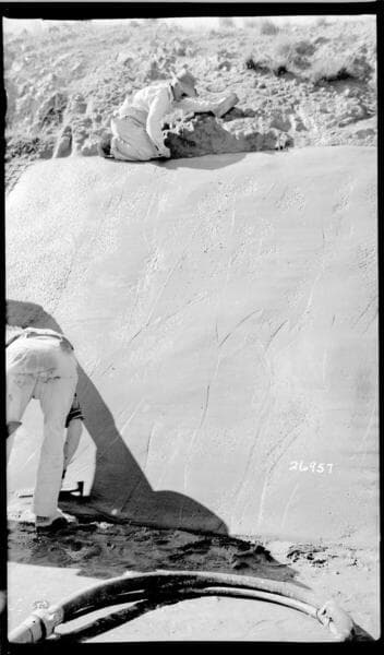 Borel Powerhouse - Borel Canal - Placing gunite canal wall lining at approximate station 25+00 by Johnson-Western.