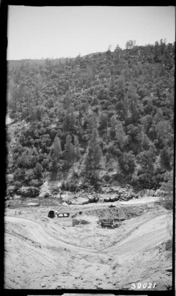 Big Creek Powerhouse #8 - Looking down along location for penstock, 2nd unit, Big Creek #8. Shovel has already made trench excavation and has returned to location as shown.