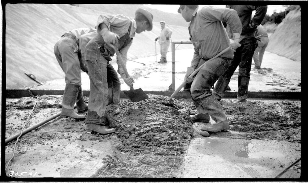 Borel Powerhouse - Borel - Placing concrete floor slab in cut-over canal