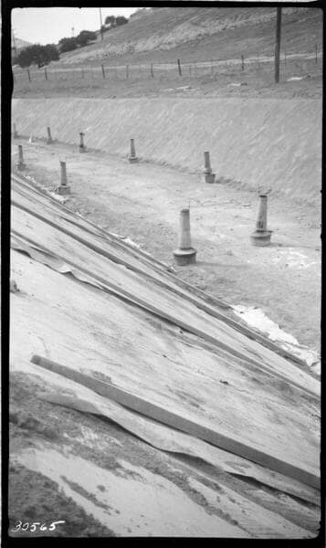 Borel Powerhouse - Borel Canal - Placing gunite canal wall lining at approximate station 25+00 by Johnson-Western.
