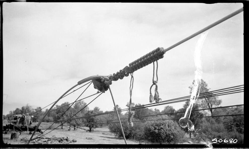 Big Creek 4-Magunden Transmission Line - Johnson, Sanders, Kulberg, and party inspection of cable damage.