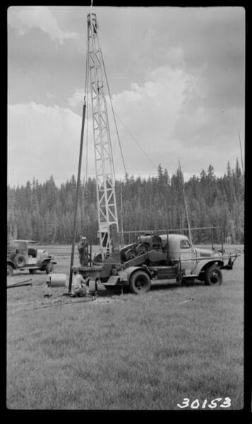 Big Creek, Vermilion Dam - Boggy Meadow exploratory drilling at Boggy Meadow area - auger used to clear-out 4" casing hole TP2-OBSI - depth 30'.