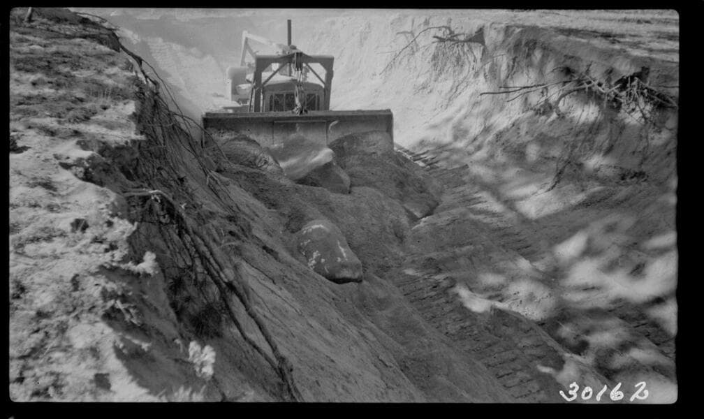 Big Creek, Vermilion Dam - Moraine cut for road to northwest borrow area
