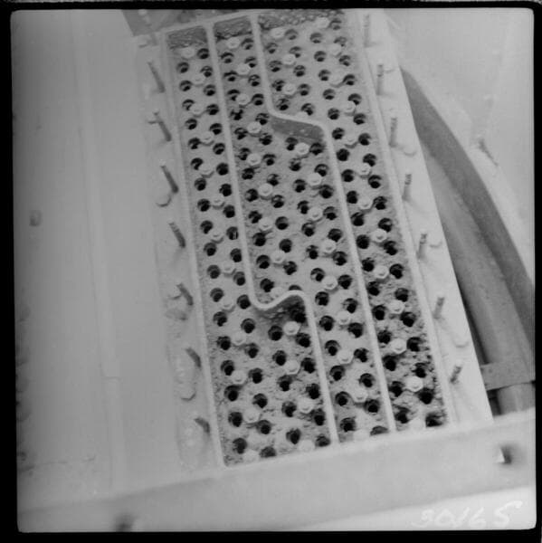 Big Creek Powerhouse #3 - PH 3 - Cap of Unit 4 generator cooling header showing lime deposits.