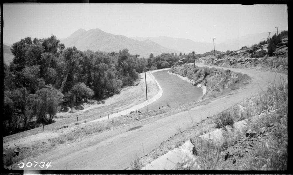Borel Powerhouse - Borel Canal - Shows excavation of mountainside for berm fill.