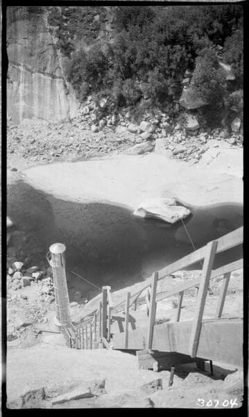 Big Creek Powerhouse #3 - Dam 6 - Drilling Cableway Anchor at Dam 6 gauging station.