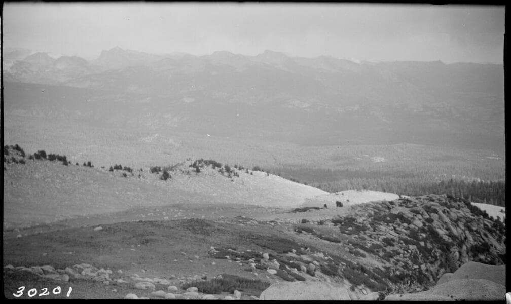 Big Creek, Vermilion Dam - Glaciation studies - Valley southeast slope of Saddle Mt. showing "moraine" or talus deposit of mixed lava and granite.