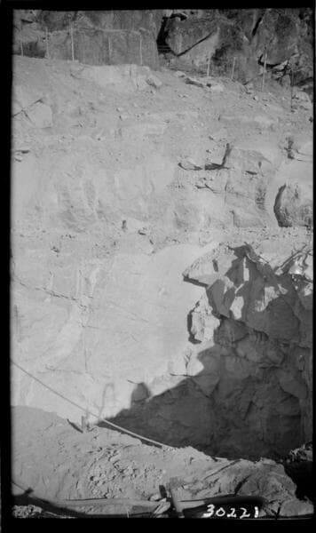 Big Creek Powerhouse #4 - Excavation for Surge Chamber showing power hoist and diamond drills.