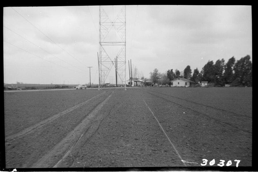 Vincent Transmission Line - Looking north to 13-2. Potato tracks made by esterly conductor.