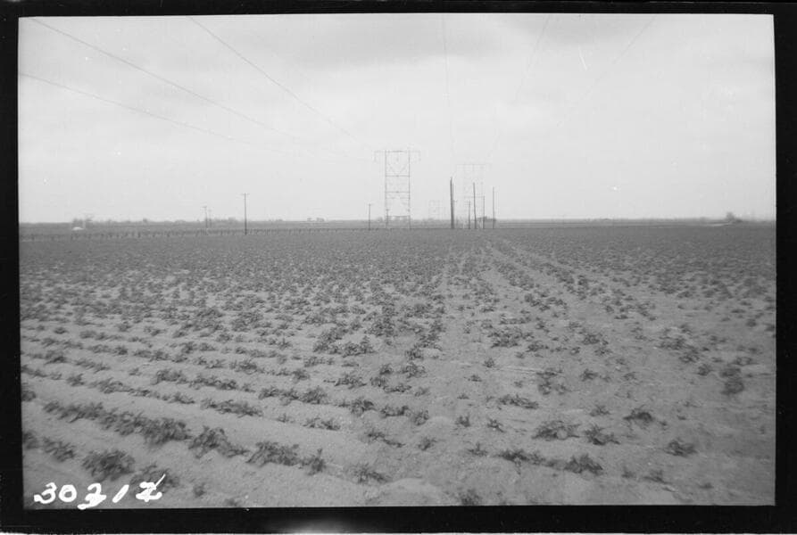 Vincent Transmission Line - Looking north to 13-2. Potato tracks made by esterly conductor.
