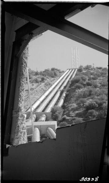 Big Creek Powerhouse #3 - PH #3 - Unit #1 test of roto valve to 780psi in S. Morgan Smith shop.