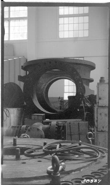 Big Creek Powerhouse #3 - PH #3 - Unit #1 test of roto valve in S. Morgan Smith shop.